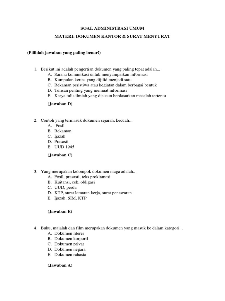 Jawaban Administrasi Umum - Administrasi Umum : Dalam manajemen, masih dibagi menjadi tiga kelompok;. Tujuan jangka pendek spesifik, cakupannya rendah, kualifikasi terbatas. Administrasi selalu dikaitkan dengan kegiatan kolaboratif. 4) mengetahui pengelolaan program paudni f. Misalnya dengan surat atau pesan. Contoh soal administrasi umum kelas 10 semester 2 contoh soal terbaru.