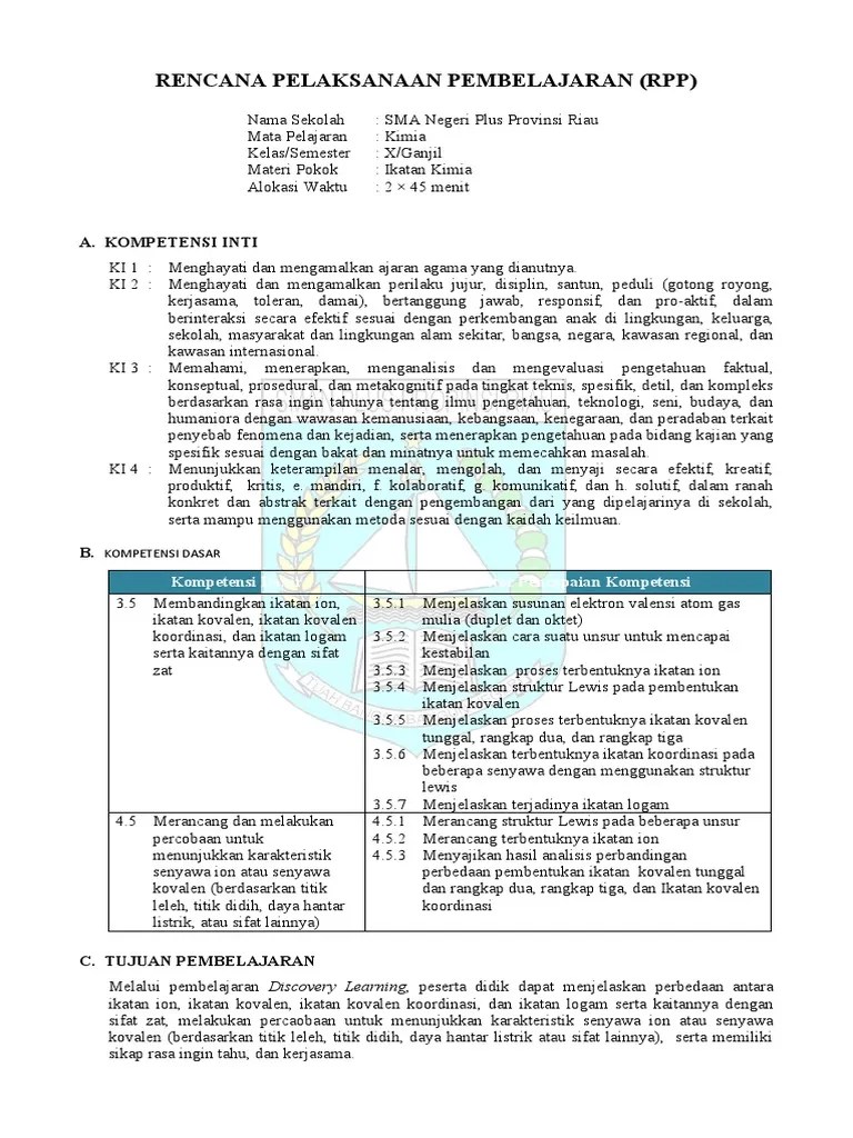 Materi ikatan kimia yang menyangkut kompetensi dasar 3.5 dan 3.6 yang.